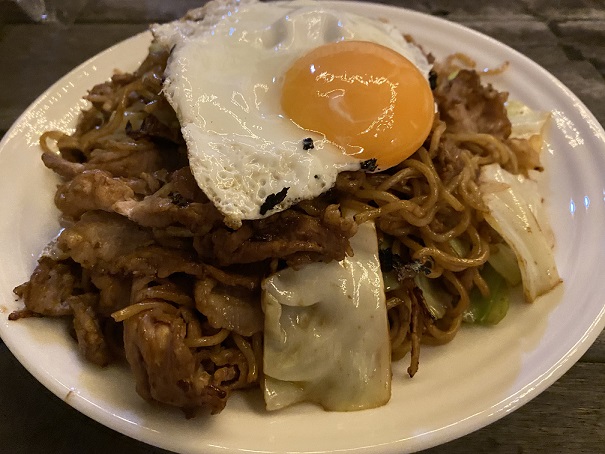 外で焼きそば食べるんだったら半熟目玉焼きでしょう~ってことで