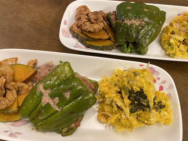 それとピーマンの肉詰めでジャックオーランタン風にしました