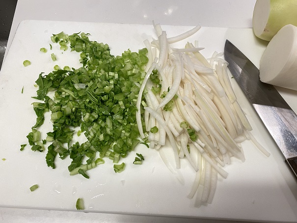 きんぴら大根は大根の皮と大根の葉と人参で作ってます