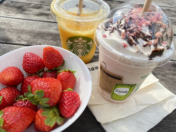 イチゴとカスタムした新作フラペを食べました