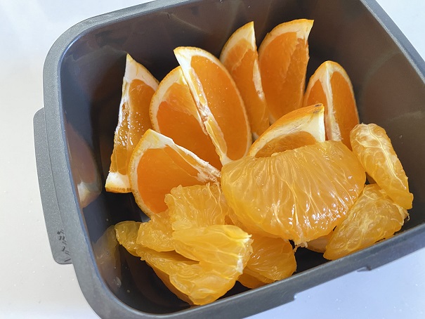 あと5つしかないしタッパーにむいたのを入れるんですが