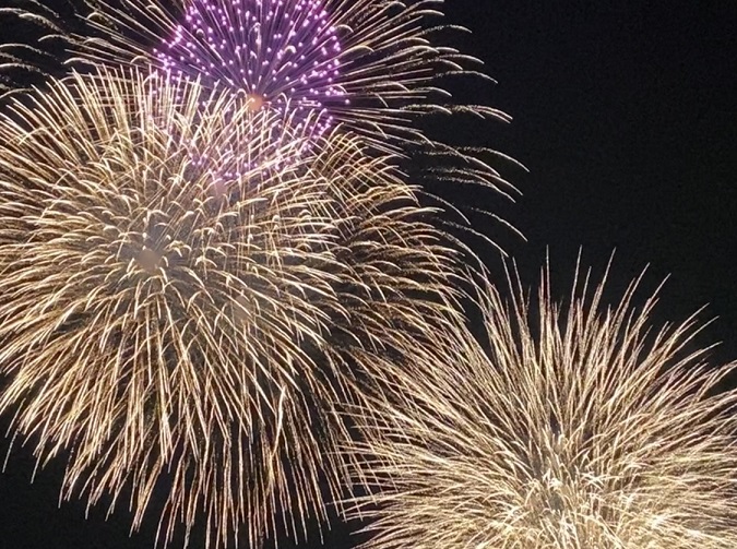 会場まで行って途中花火あがって上見ながら歩いて会場ついてフィナーレまで花火見て