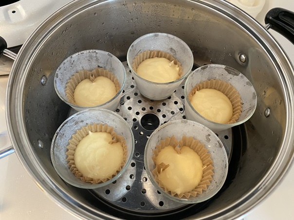 ちょうどプリンカップが使えて蒸し器にきっちり収まって真ん丸でもう可愛い