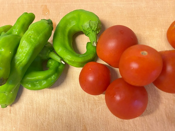 実家からもらった彩が最高なしし唐とミニトマト!
