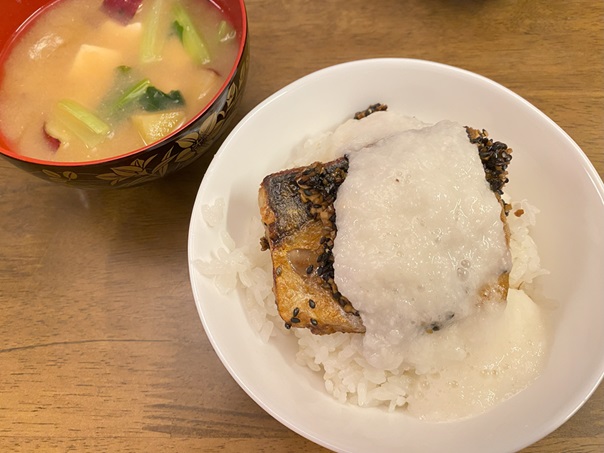 サバがこってり旨照りなんでとろろは味付けしなくて摩り下ろして