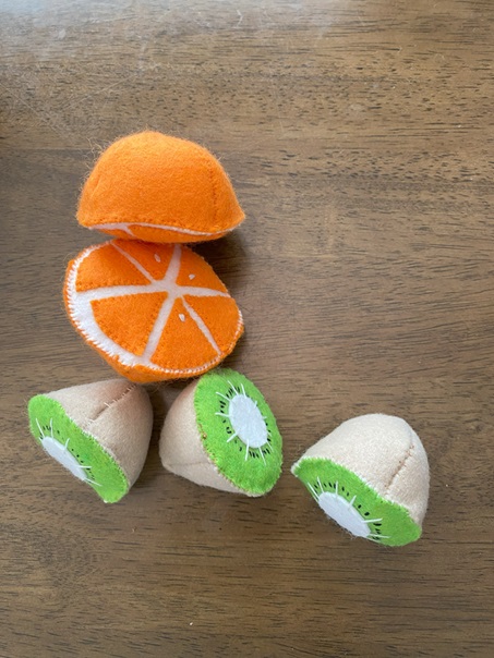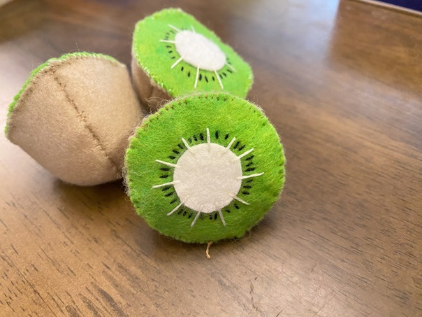 フェルト半分カットフルーツ作り♪キウイはみずみずしく出来たけどオレンジはへたくそぉぉ、、、、2024-09-04