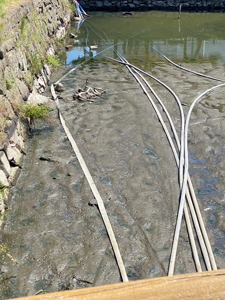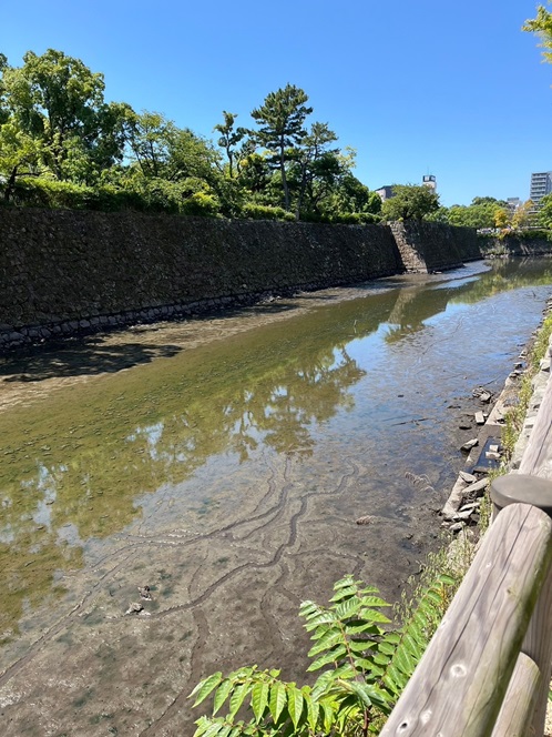 『緊急SOS!池の水をぜんぶ抜く大作戦in和歌山城』お堀のお水が抜けていく様子をお父さんに撮影してもらいました♪2024-09-07