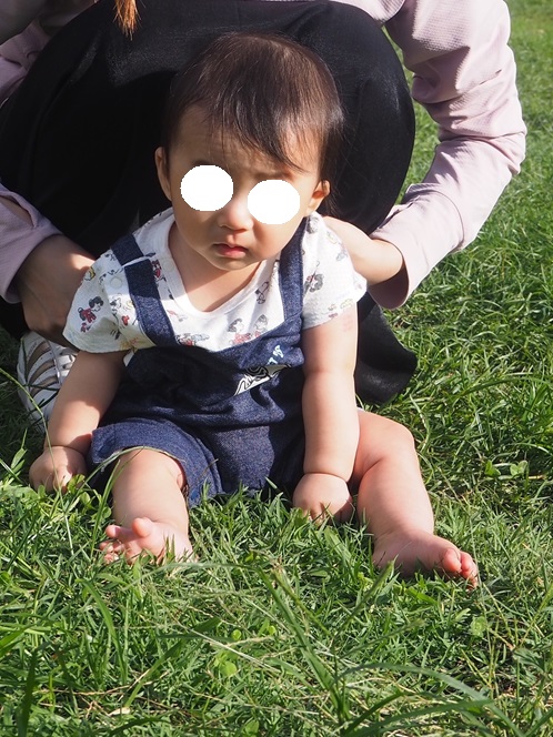 まだ一人座りできないから支えやんとやけど何んとなく楽しんでる表情(笑)