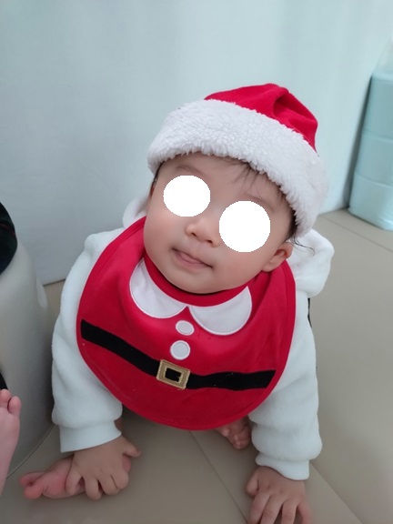 サンタ帽子とサンタスタイはママ友から借りてちびサンタになりましたっ