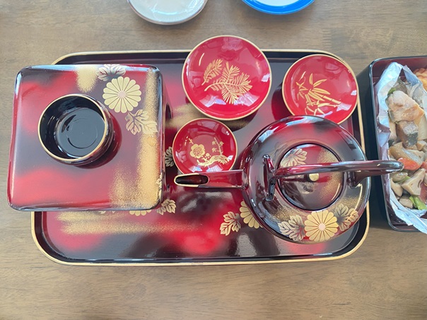おせちには緑系が少ないから緑のバレンとかで仕切るとさらにおいしそうに見えるんかな