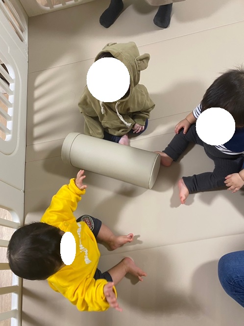 友達の家のベビーサークルが広くて大人2人入っても余裕やし