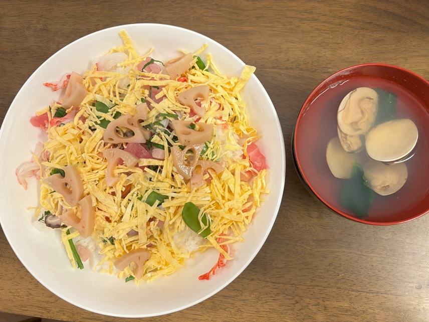 3月3日はひな祭りでしたねっ♪息子なので関係ない節句ですが日本の伝統的な行事として教えたいのでちらし寿司とお吸い物を作りました☆!2025-03-17