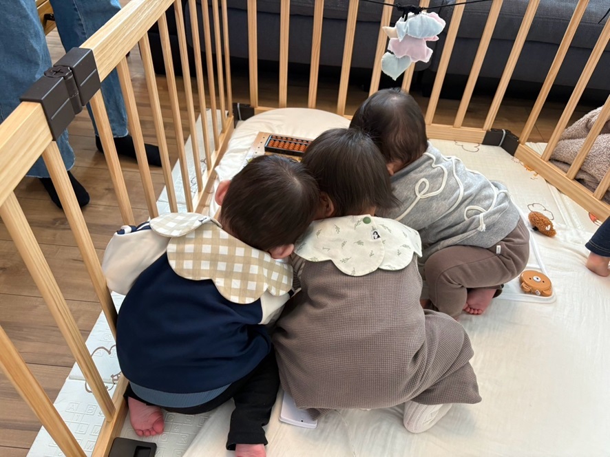女の子ベビたちがぐずってたからビジーバッグで遊ばせてたら