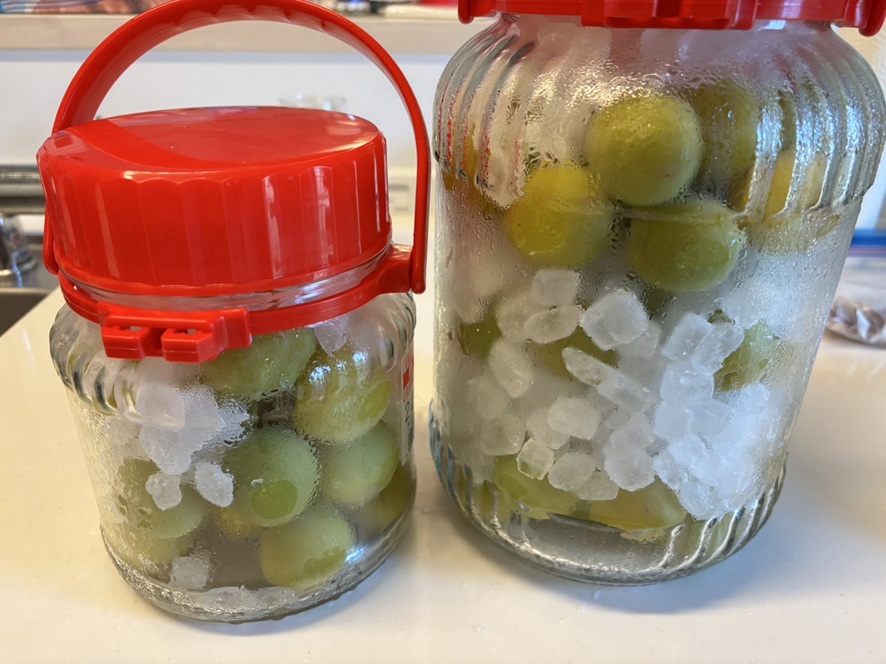 親戚からいただいた青梅の2キロを冷凍して凍ったまま