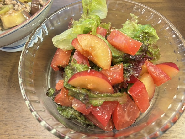 おうちごはん すももをたくさん実家から貰ったので一部のすももをサラダにしましたっ!すももの酸味で絶品サラダ♩2025-07-14