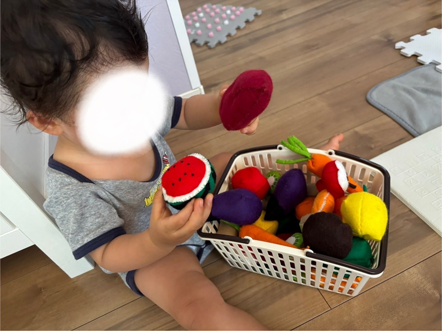息子のハーフバースデー用にチクチク作ってたフェルトのお野菜と果物をようやく解禁してお買い物ごっこをしてます(笑)頑張ってよかった(笑)2025-07-15