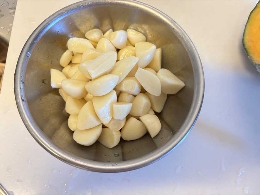 まずニンニクは全部向いて食べやすい大きさに切り分けます!