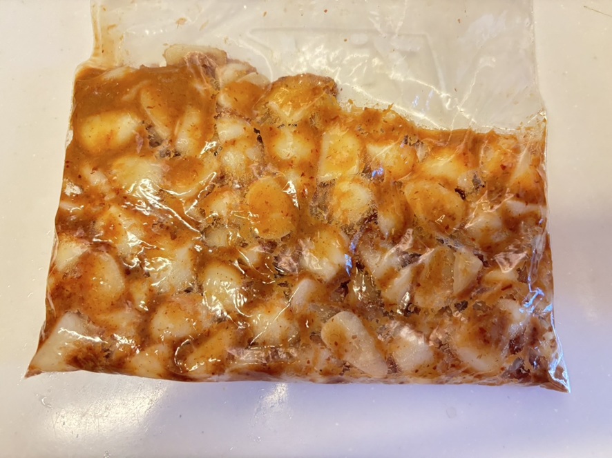 よく揉みこんで冷蔵庫で一晩寝かせれば完成っ