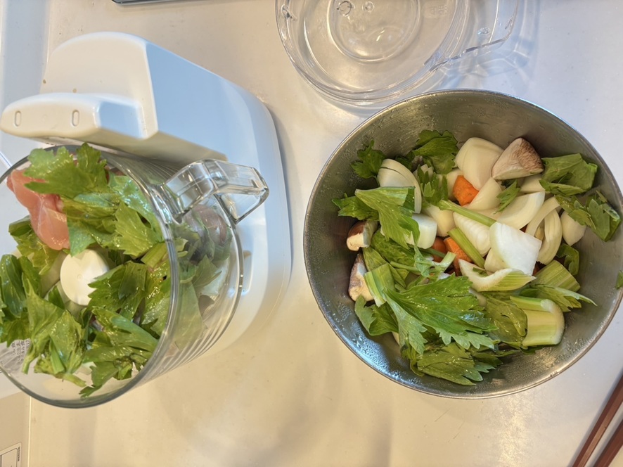 食材をぶつ切りにして全部フードプロセッサーで撹拌します