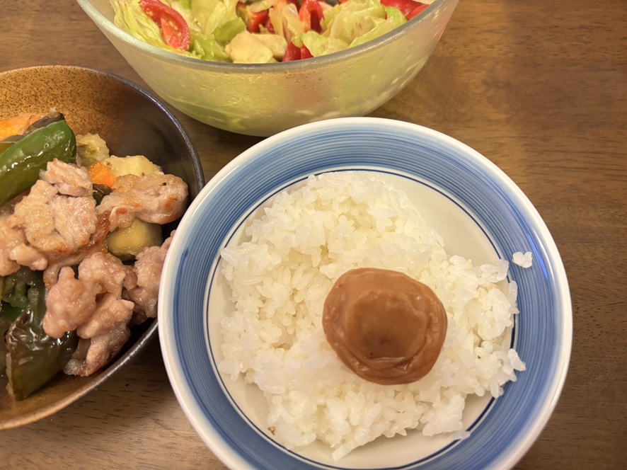 おうちごはん 仕込んだはちみつ梅が完成したので早速晩ごはんのお供になってもらいましたっ☆!2025-08-24