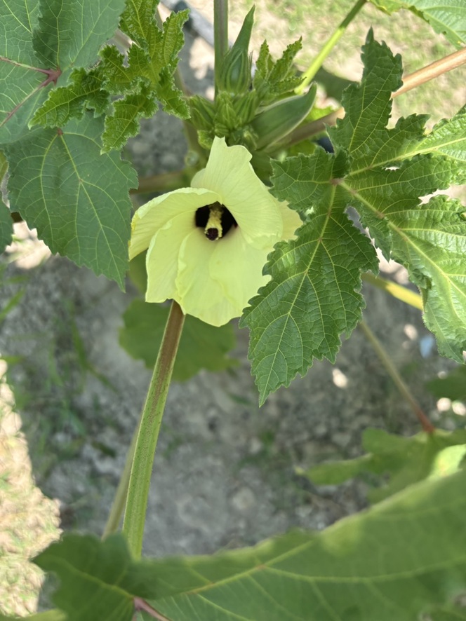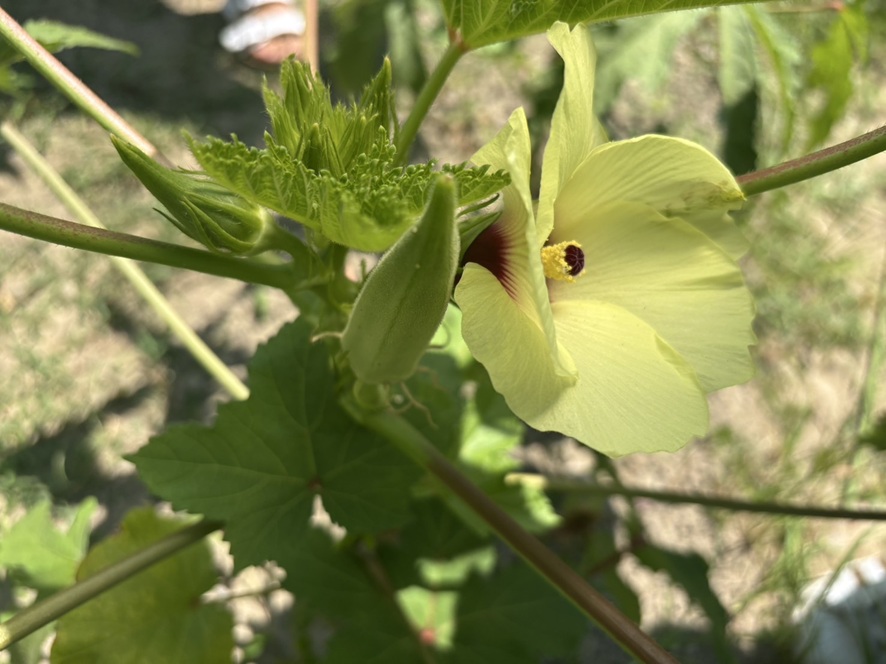 初めての体験だったんですがオクラってこんな感じで花が咲いて実になるんや~