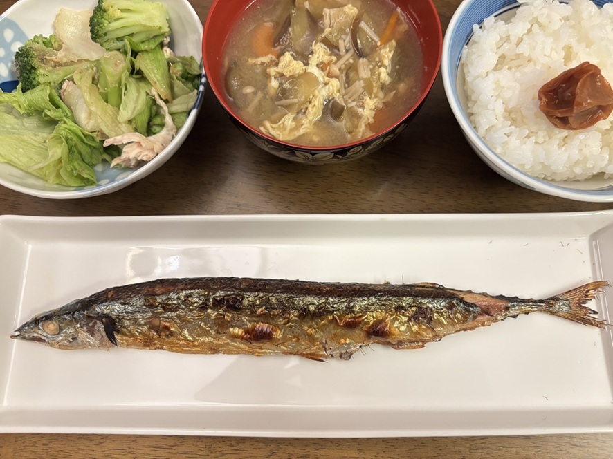 この日のメニューは秋刀魚!(大根おろし、スダチがあれば尚よかった