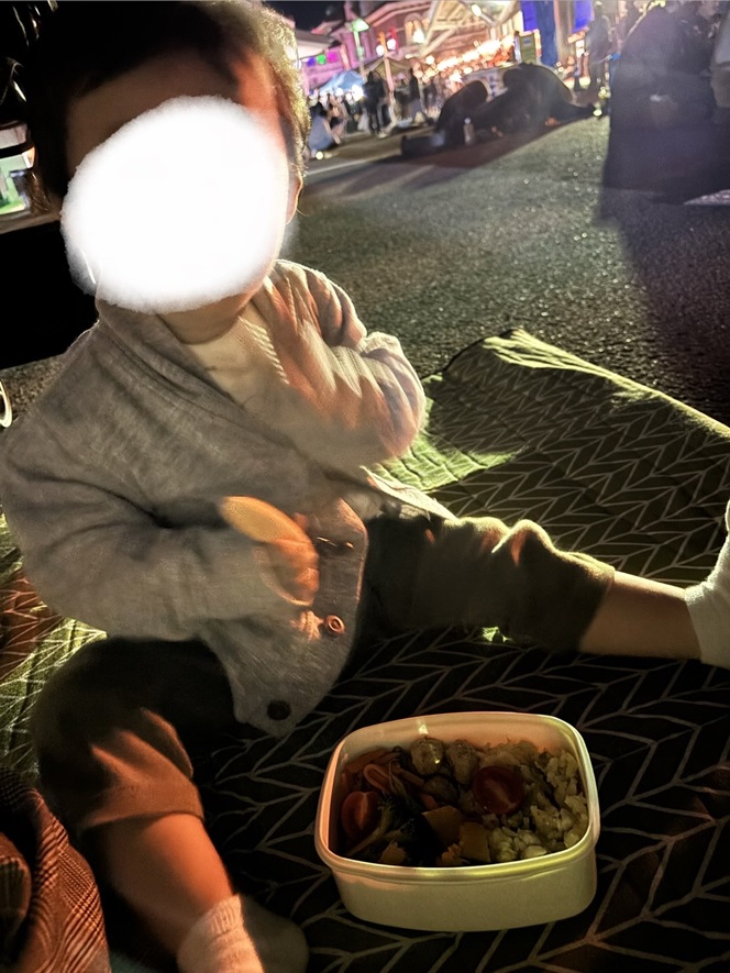 その間にレジャーシートを広げて晩ご飯っ😌💕