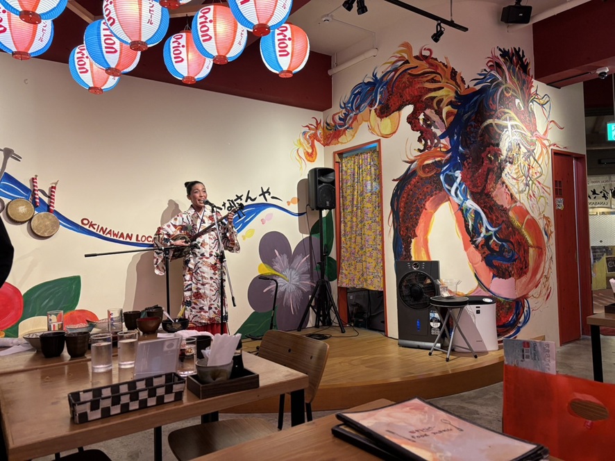沖縄料理を食べながら沖縄の演奏を聴いて沖縄を感じれて