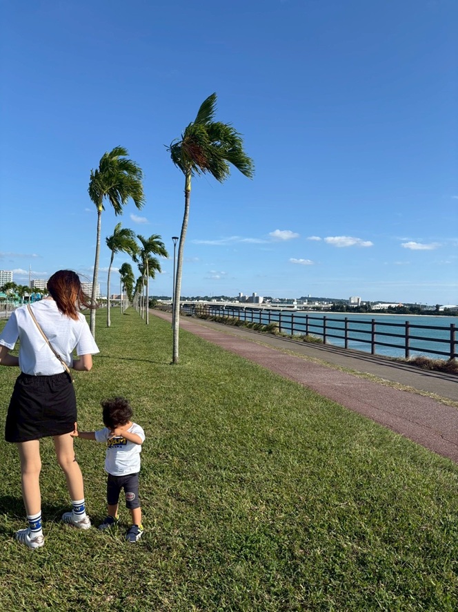 沖縄2日目!毎年行きたかったけど時間の都合で毎年行けてなかったヤシの木ロード!ようやく行けましたっ☆!そして何度来ても飽きないウミカジテラス!♩2025-12-09