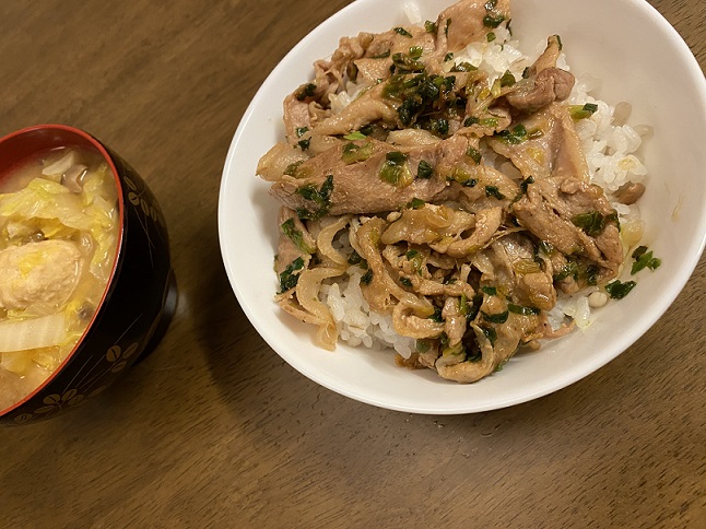 風邪予防に葱豚丼2020-02-11