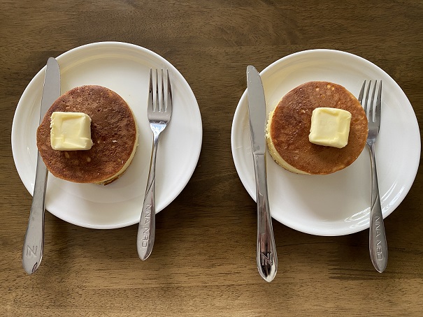 先日、朝ごはんに厚焼きパンケーキを作りました