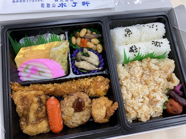 和歌山駅のホームの入口にも水了軒さんのお弁当