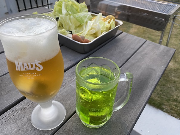 バーベキューと言えばメロンソーダでしょっ!って私と