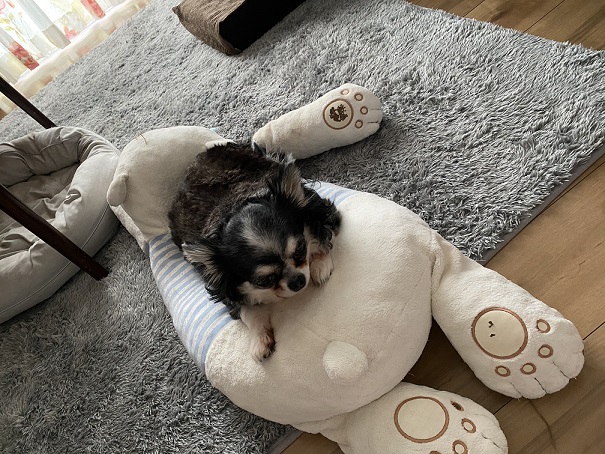 お犬さんが寝るのにちょうどいい高さになってるみたいです