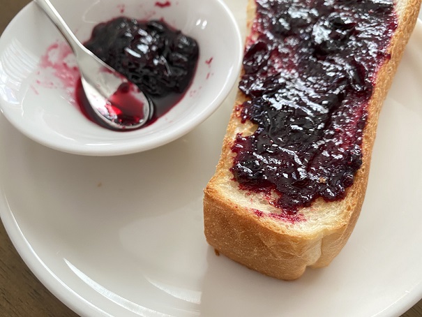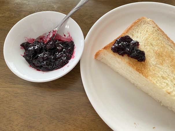 昨日作ってさっそく今日の朝ごはんにジャムをパンに塗って食べました