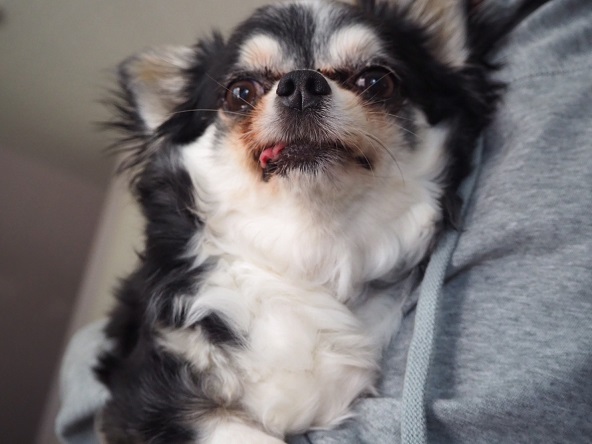 抱っこされたお犬さん
