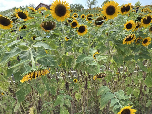 なかにはお辞儀しちゃってるひまわりもありましたが