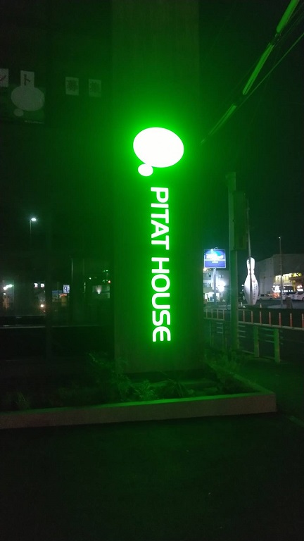 夜になっても縦のPITAT HOUSEの文字が光るので