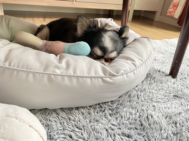 最近は大人しくペットベッドで寝てくれるようになりました(笑)