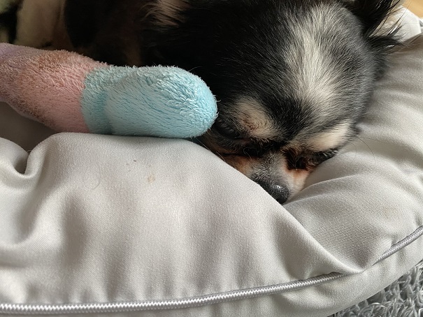 大好きな大好きなおもちゃと共に寝るお犬さん2020-09-05