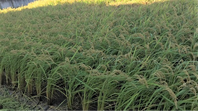 台風とか雨風の強い雨だったりで稲が寝ちゃってて
