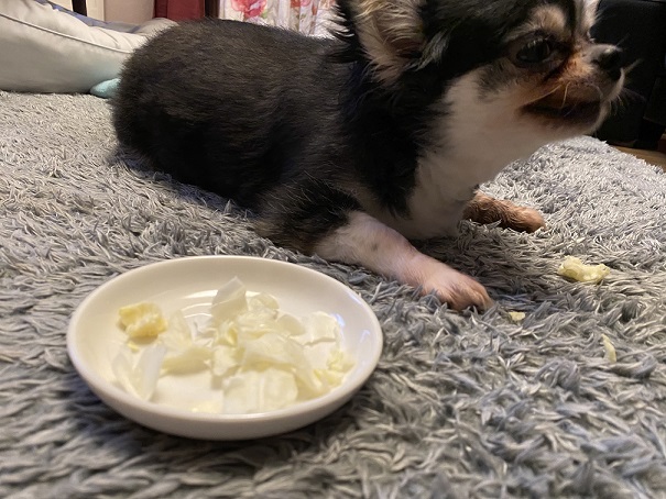 なのでお犬さんのキャベツを乗せるお皿を出しただけで