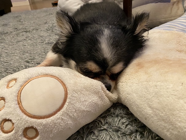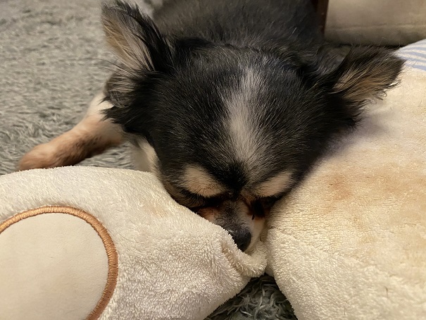最近のお犬さんの定位置はクマさんの足の付け根2020-10-19