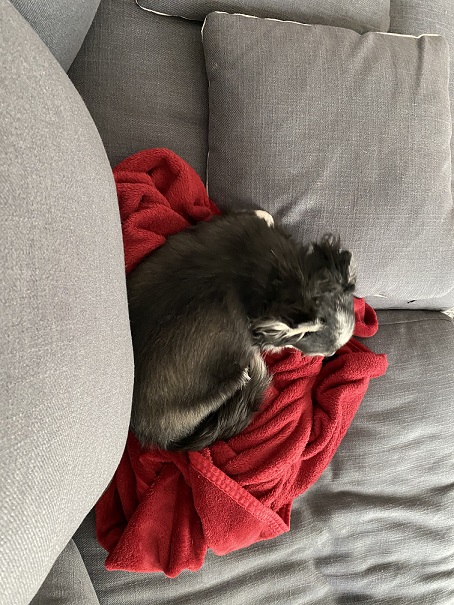 ちょっと前まではソファーの毛布の上