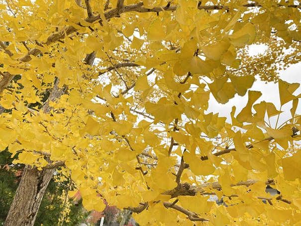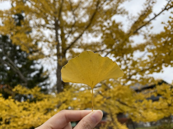 散って地面に落ちた銀杏も一面黄色になるからきれいで好きです