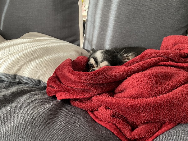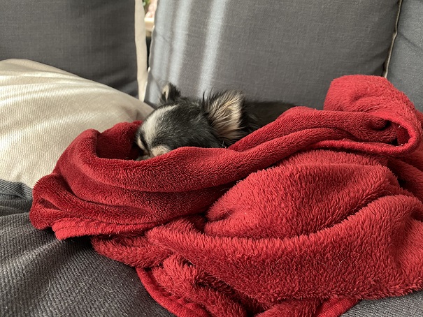 寒くなってくて何かに包まったり中に入り込むお犬さん2020-11-12