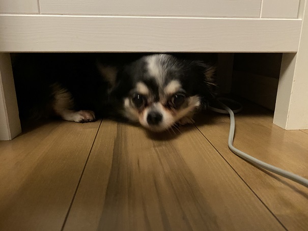 寒すぎたんかタンスの下に潜り込んで