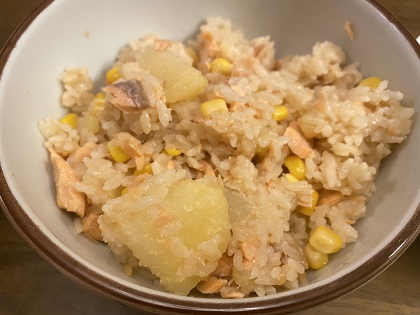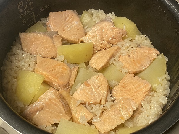 先日、鮭とジャガイモの炊き込みご飯を作りました