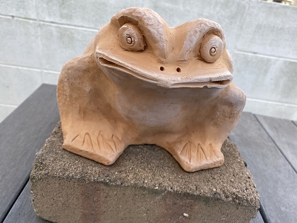 無事に”帰る”の願掛けで土を素焼きした”カエル”を作ってもらいました!2020-12-19