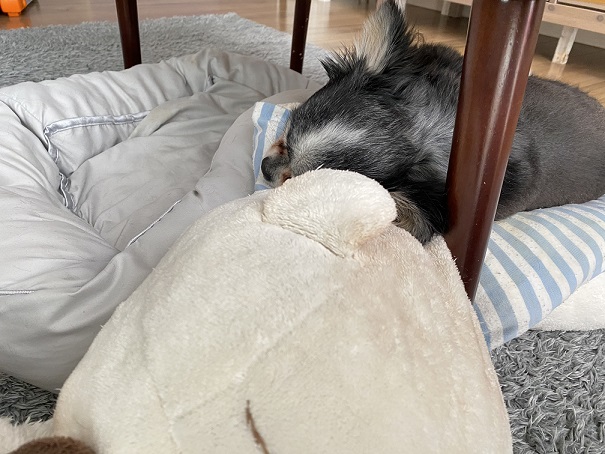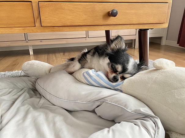 お犬さんは机の下とか暗い所が落ち着くみたいで
